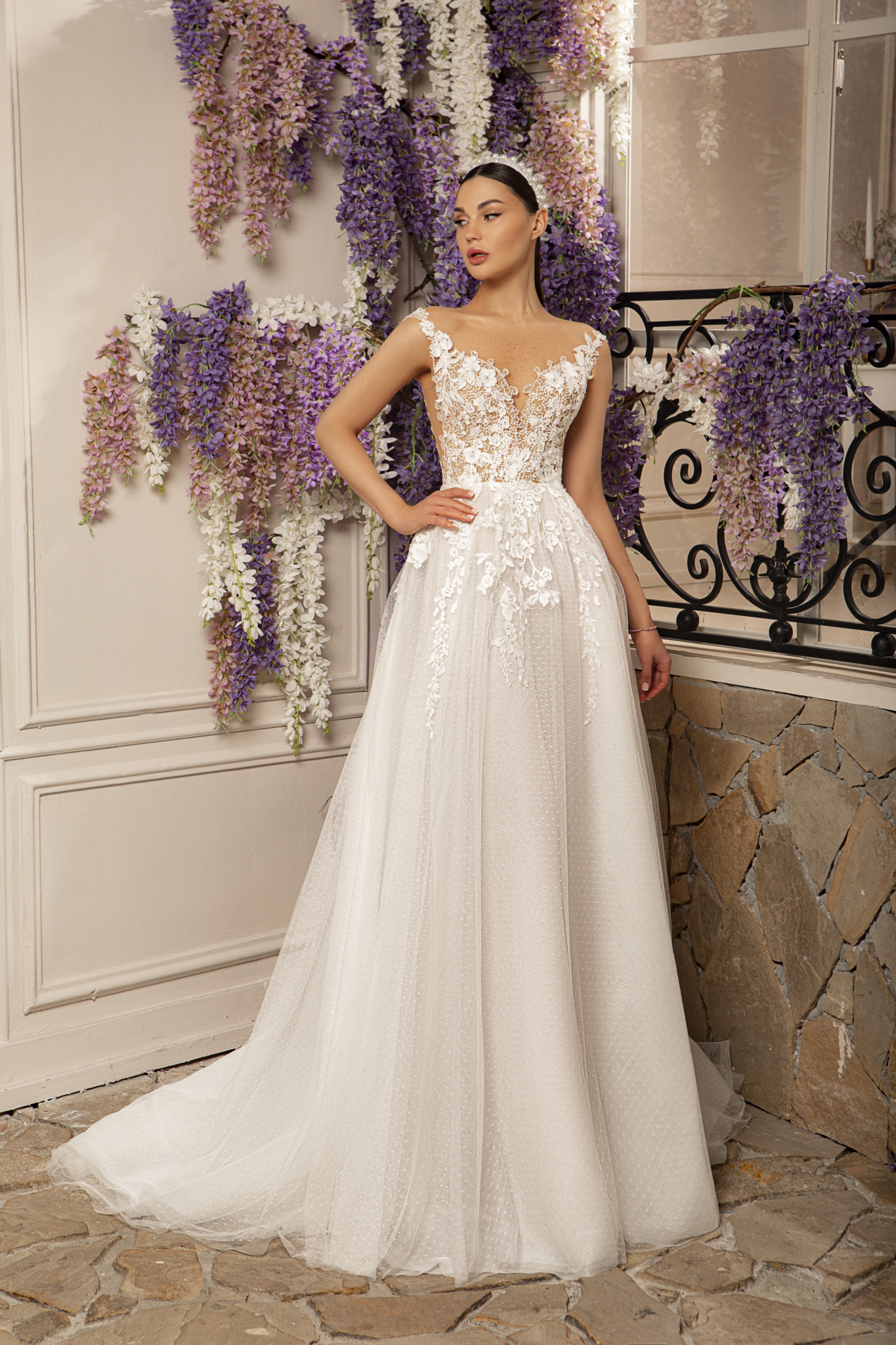 Ручная работа — элегантность и пышность в молочном А-силуэте.